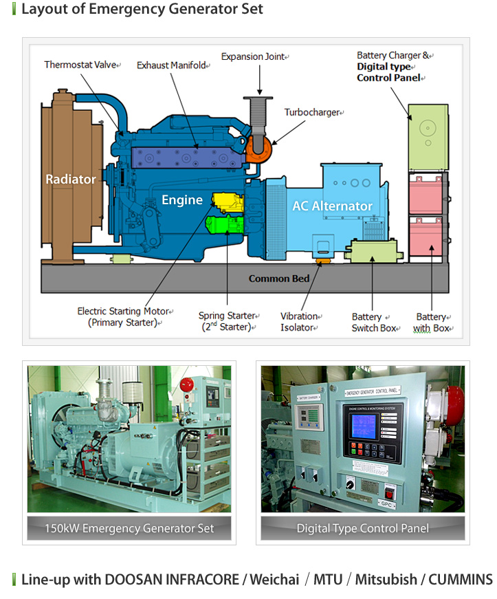Marine Emergency diesel generator sets from 60kW to 2,000kW.